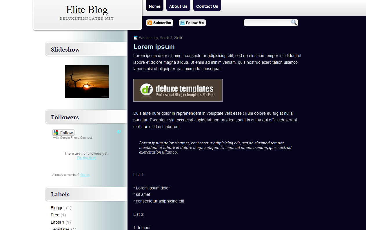 Elite Blog Blogspot Template