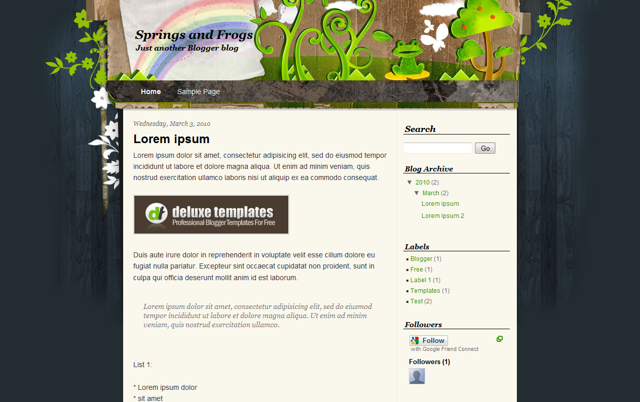 Springs and Frogs Blogspot Template